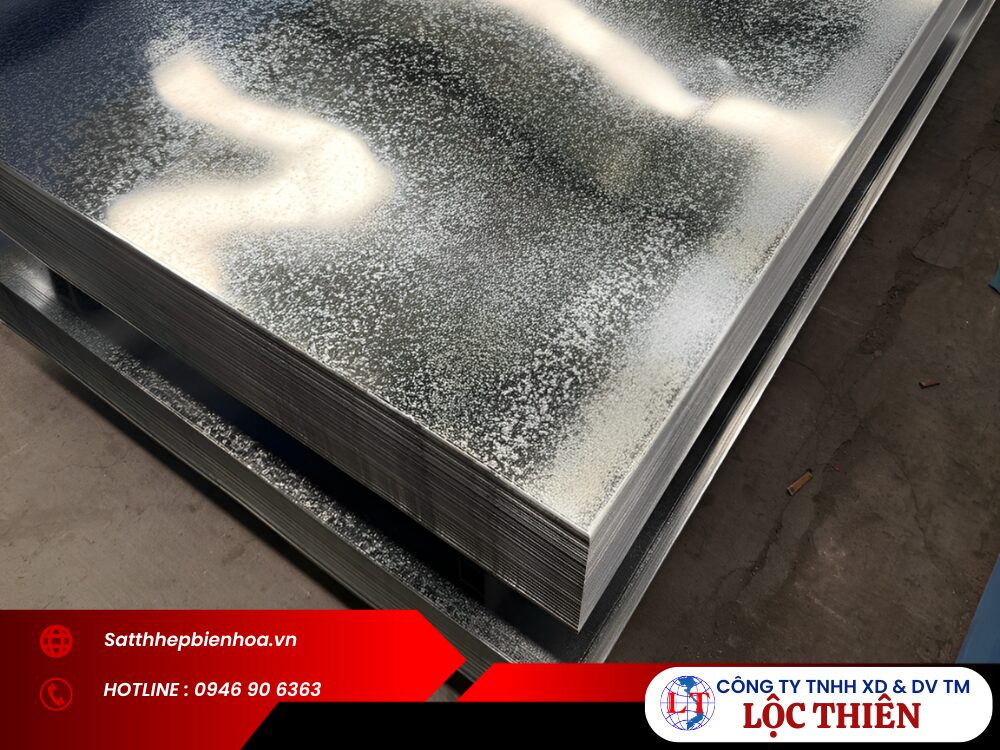 - Thép tấm mạ kẽm 2 ly: Là thép tấm carbon được phủ một lớp kẽm nhúng nóng hoặc mạ kẽm điện phân nhằm tăng khả năng chống oxy hóa, kéo dài tuổi thọ trong môi trường ngoài trời hoặc nơi có độ ẩm cao. Nhờ lớp mạ bảo vệ, sản phẩm phù hợp cho các công trình dân dụng, hệ thống máng nước, lợp mái, sản xuất thùng, bồn, và thiết bị ngoài trời. Giá thành của thép tấm mạ kẽm cũng nhỉnh hơn so với thép tấm đen.